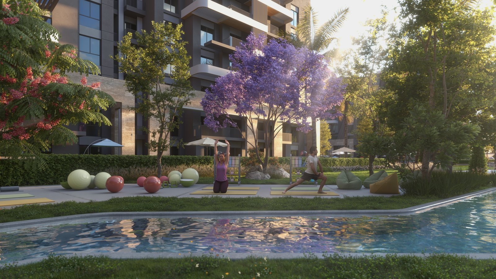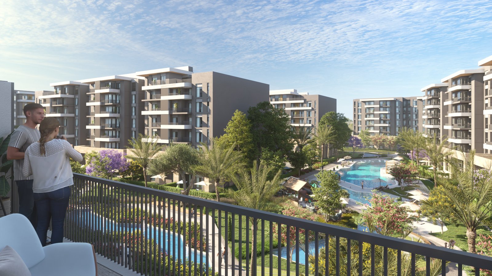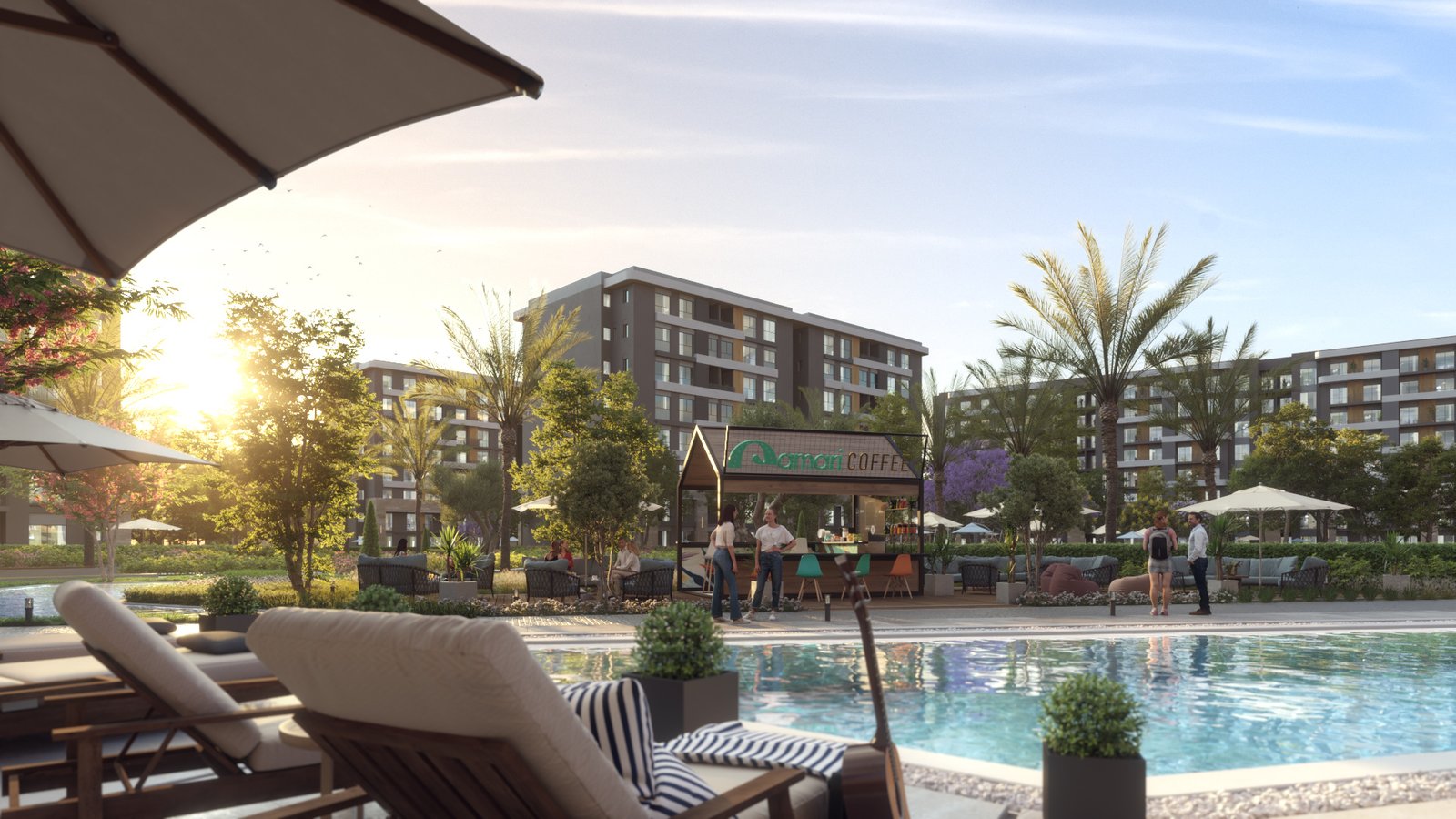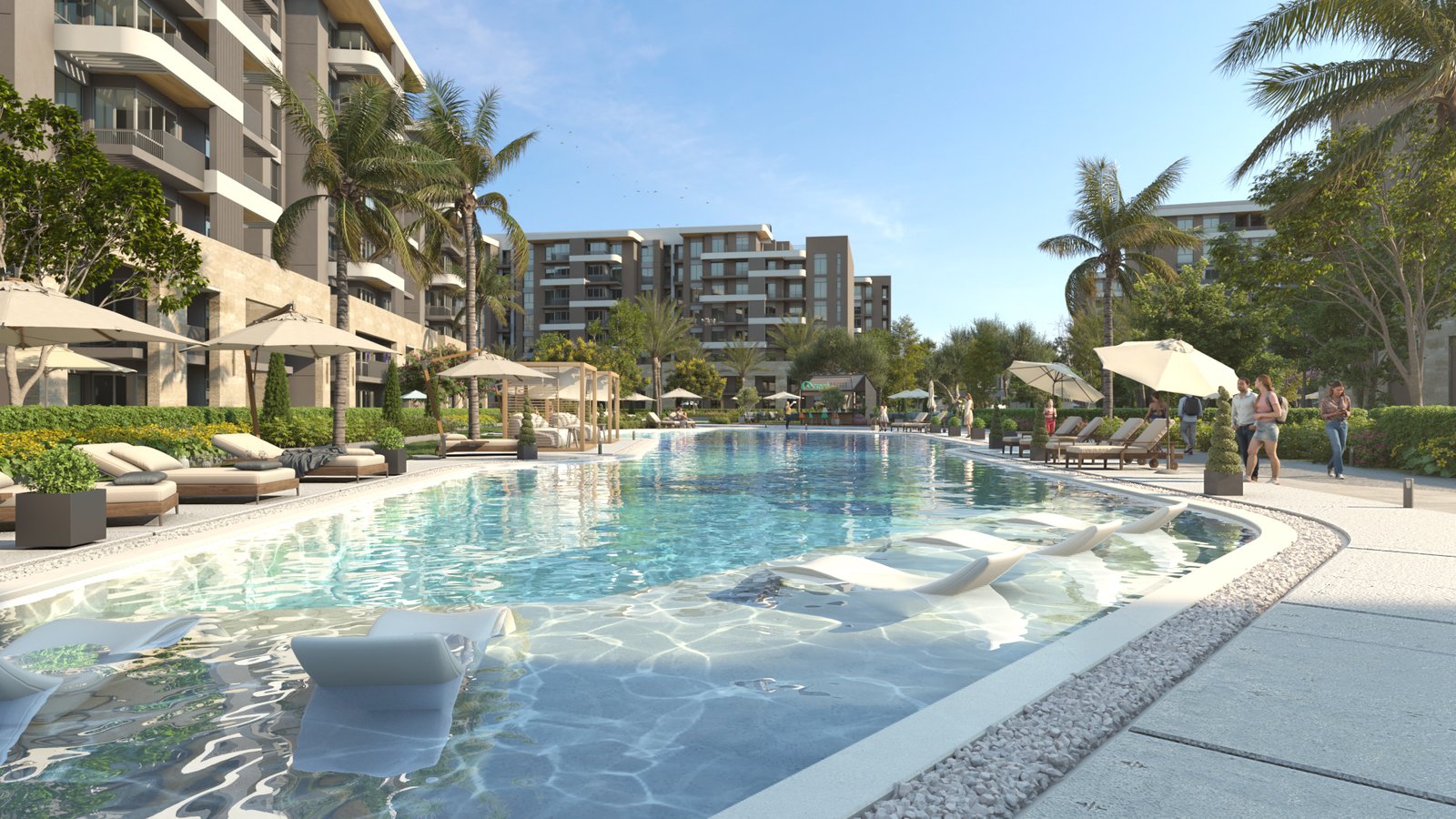 تشغل المباني حوالي 20% فقط من مساحة الكمبوند، بينما تُخصص 80% للمناظر الطبيعية، المسطحات المائية، اللاند سكيب، والحدائق، ما يوفر مساحات واسعة للترفيه والاسترخاء ويعزز جودة الحياة.