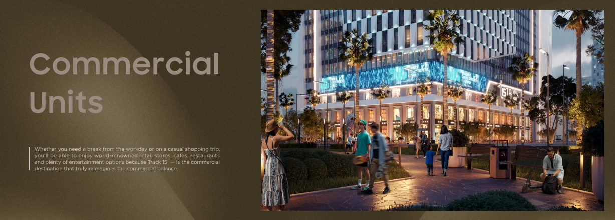 يمثل مشروع Track 15 فرصة مثالية للراغبين في شراء محل تجاري في العاصمة الإدارية، أو مكتب إداري للبيع في الداون تاون، أو عيادة للبيع في العاصمة الإدارية، خاصة مع قرب مول Track 15 من سنترال بارك العاصمة الإدارية، ومحطة مونوريل الداون تاون، ومحور بن زايد الشمالي، والحي الحكومي، مما يعزز من قيمة الاستثمار العقاري بالعاصمة الإدارية الجديدة.