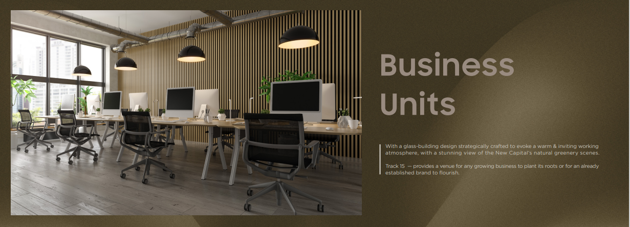هذا التقسيم الذكي يجعل مول Track 15 من أفضل الخيارات لكل من يبحث عن مشروع تجاري إداري طبي متكامل داخل الداون تاون العاصمة الإدارية.
