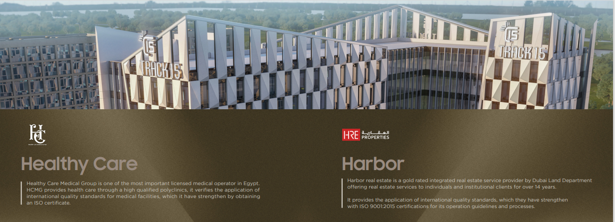 ولأول مرة في مصر والعاصمة الإدارية، تم التعاقد مع شركة HCMG – Healthy Care Medical Group لإدارة وتشغيل الوحدات الطبية داخل مول Track 15، وهي شركة متخصصة في القطاع الطبي تضم أكثر من 4500 طبيب، مما يجعل المشروع من أفضل مول طبي في العاصمة الإدارية الجديدة.